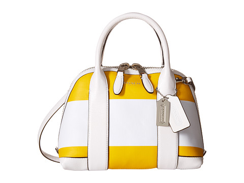 COACH 蔻馳 Bleecker Striped Coated Convertible 女士真皮黃白條紋貝殼包,采用小牛皮材質(zhì)制成,拼接條紋樣式,大包+零錢包配搭,非常的實用,拉鏈款式比較安全,內(nèi)有手機(jī)、多用途儲物等多個滑袋??墒痔峥尚笨?,尺寸約為22.86x19.05cm,逛街約會使用都不錯。原價$228,現(xiàn)特價$129.99,約906元。