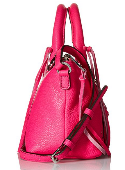�(yōu)惠力�:Rebecca Minkoff Micro Moto Satchel 斜挎包,帥氣機車�!采用荔枝紋牛皮材質,柔軟細�,包身正面兩個斜拉鏈口袋,拉鏈頭、手提帶的流蘇設�,妥妥機車風,充滿與眾不同的個�。包頂拉鏈開�,印花襯�,內置一個拉鏈口袋和3個插�,尺寸約�37*34*12cm。原�$195.00,現(xiàn)Flamingo色款特價$97.99,約654��