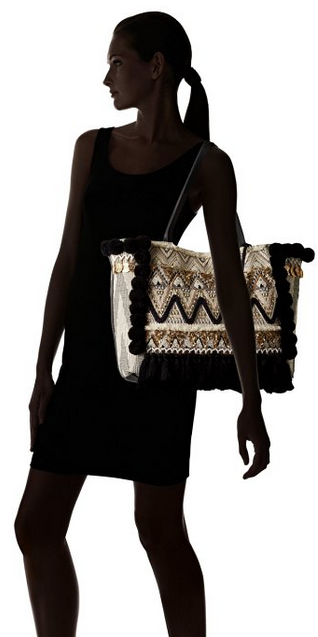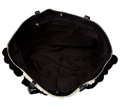 �(yōu)惠力�:Rebecca Minkoff Taj Tote 刺繡單肩�,屬�2016年新�!刺繡包面搭配周圍黑色毛球裝飾,設計感十�;背面和�(cè)面的條紋帆布材質(zhì),耐磨耐用;真皮材�(zhì)的底部,結實耐磨。暗扣開合,方便�??;內(nèi)�2個多功能貼袋�1個拉鏈內(nèi)�,可分開放置不同物品。尺寸約�46*33*18cm,容量充�。原�$295,現(xiàn)特價$84.42,約563��