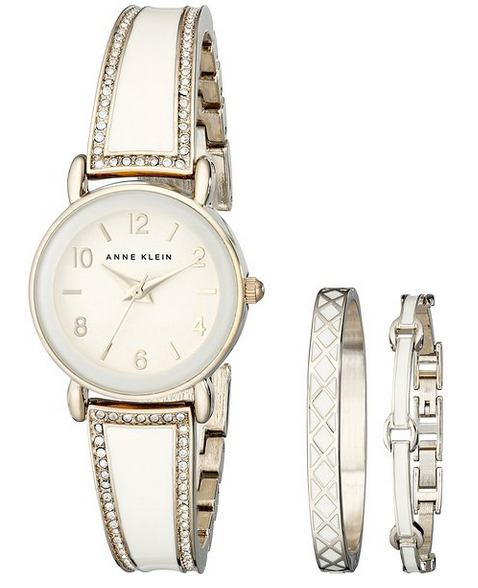 近期好價(jià)!Anne Klein 安妮?克萊恩 AK/2052IVST 女款施華洛世奇水晶腕表手鐲套裝 $75