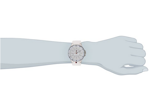 優(yōu)惠力度:這款Tommy Hilfiger 湯米?希爾費格 1781271 女士時尚腕表采用硅膠表帶,結實耐磨。配備白色表盤與銀色阿拉伯數字時標,模擬顯示石英機芯,保護礦物水晶表盤窗口。品牌Logo顯眼,增添時尚氣息。30米生活防水,能經受雨水和水濺,但是不建議洗澡或游泳時佩戴哦~原價$110,現特價至$66,約447元。